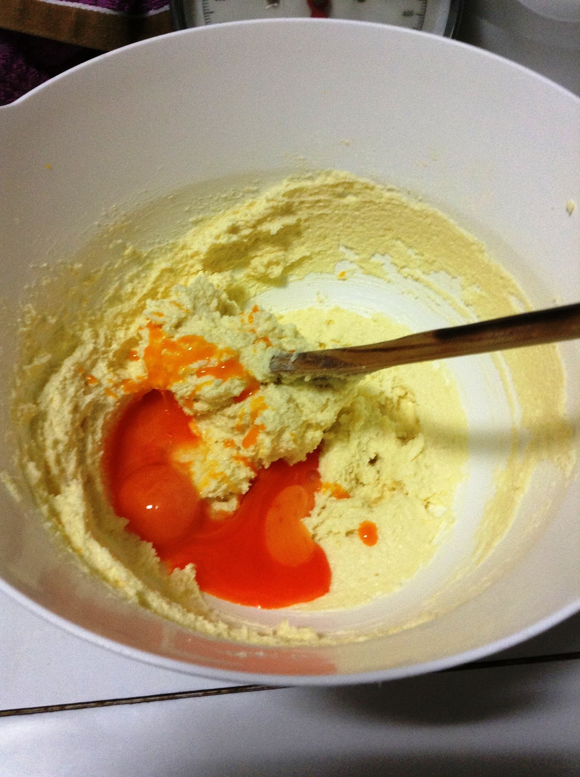 Mistura-se o açúcar areado com a manteiga e o ovo. Junta-se em seguida a farinha previamente misturada com o fermento, o açúcar pilé e a raspa de limão.