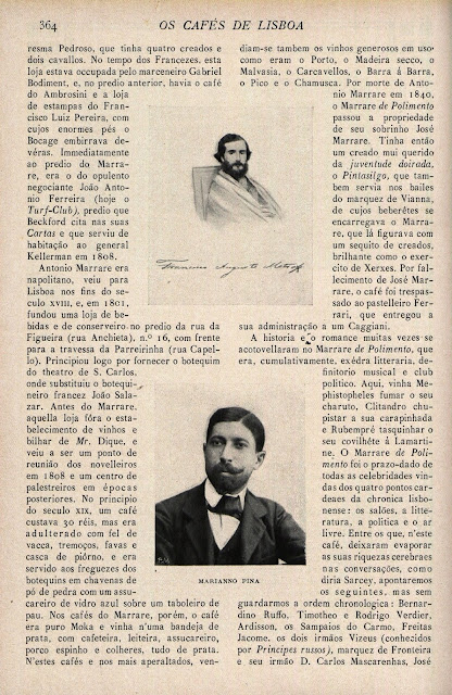 Para a espectacular revista Serões - que pode consultá-la em http://hemerotecadigital.cm-lisboa.pt/Periodicos/Seroes/Seroes.htm - deixou este espectacular retrato sobre Os Cafés de Lisboa.